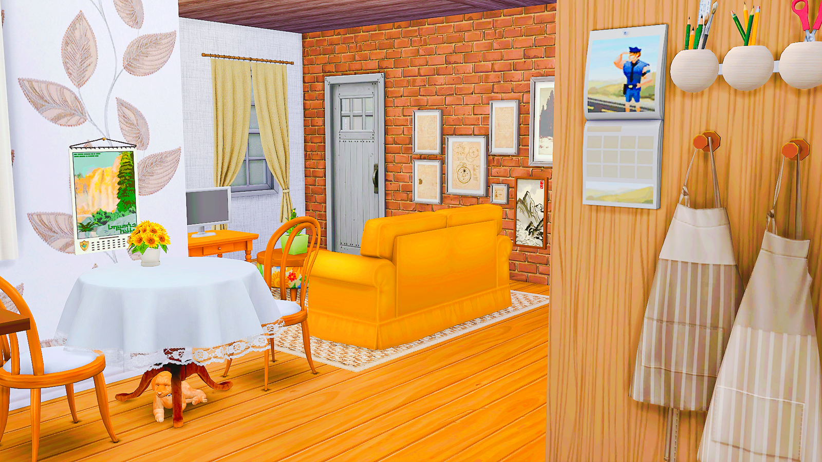 「カッパーデールの遊園地のそばに、元から建ってるスターターハウス」がなんだか好きだったので、改装して新しいシムたちに住んでもらうことにしました。デフォルトの名前が「ラスリポイント」となっているところです。